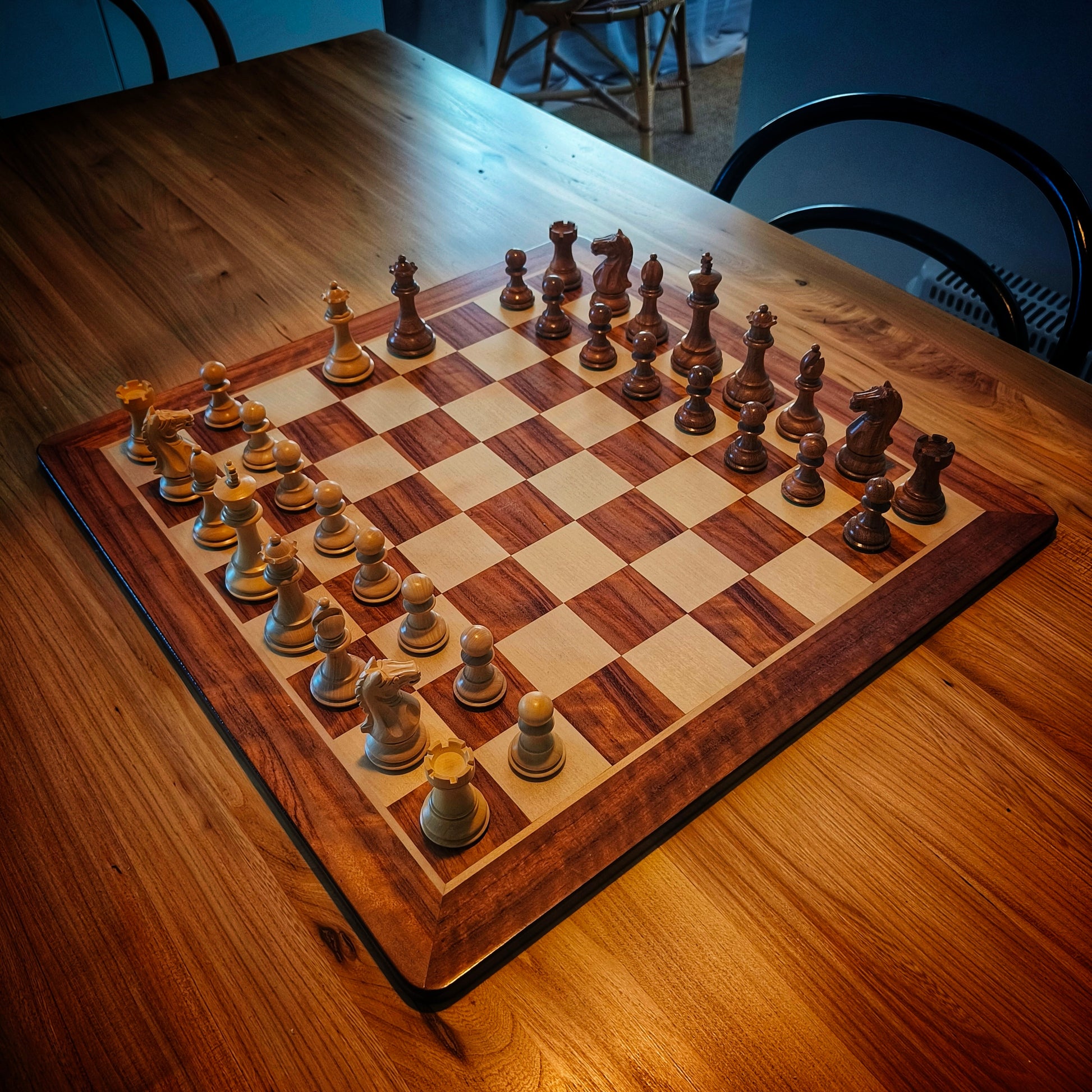 Materialer brugt til skakbrikker: Buxbom & Akacia